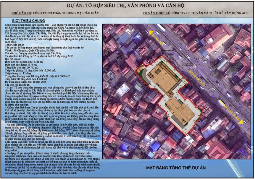 Tên dự án: Tổ hợp văn phòng, trung tâm thương mại và căn hộ cao cấp đạt tiêu chuẩn quốc tế CTM Building 139 Cầu Giấy.